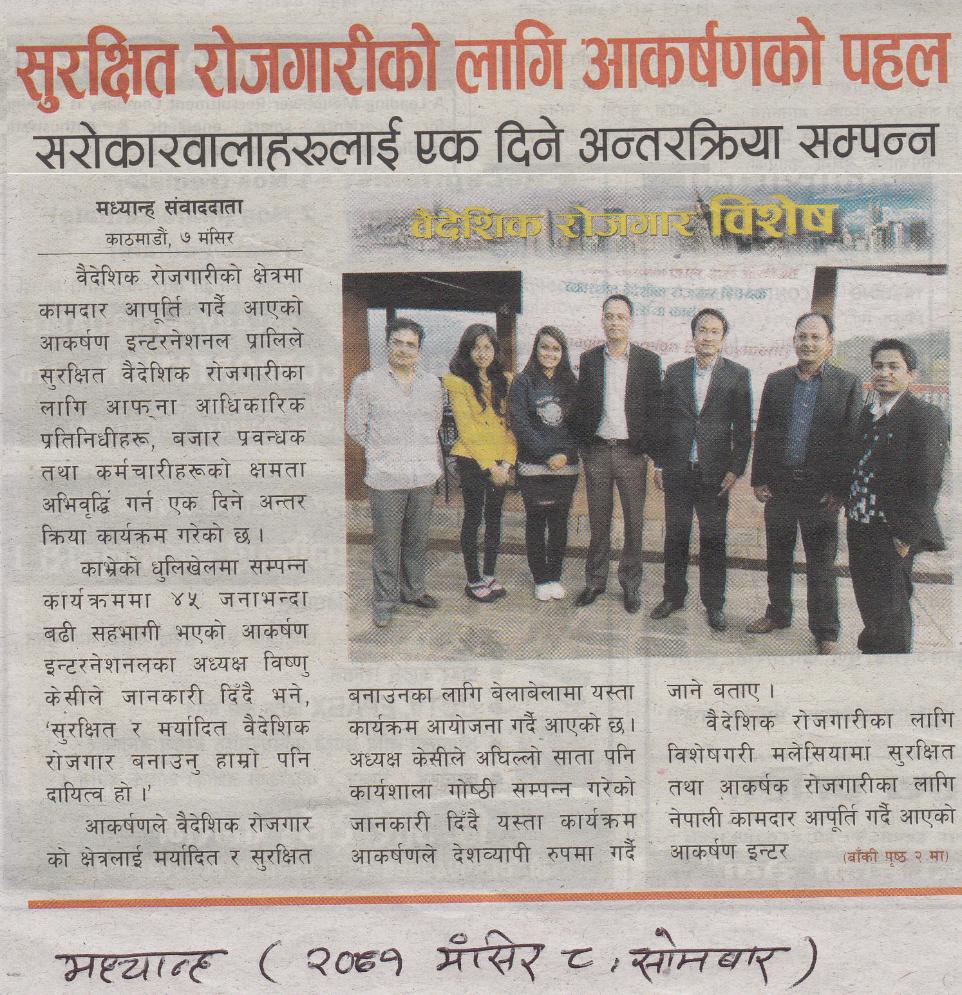 The Medias section of Aakarshan International Pvt. Ltd. is our digital gallery where we showcase the moments, activities, and stories that define who we are and what we do. Through photos, videos, and media highlights, we bring you closer to our journey of promoting ethical, fair, and responsible foreign employment.